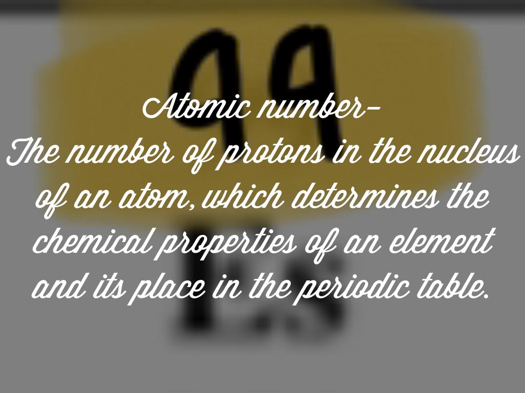 The number of protons in the nucleus of an atom, which determines the chemical properties of an element and its place in the periodic table.