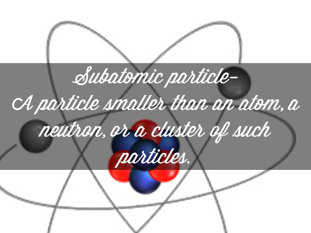 A particle smaller than an atom, a neutron, or a cluster of such particles.