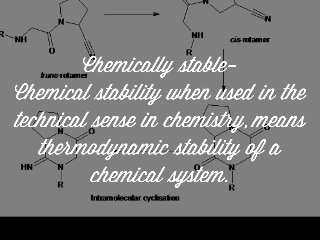 Chemical stability when used in the technical sense in chemistry, means thermodynamic stability of a chemical system.