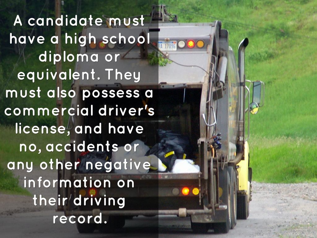 A candidate must have a high school diploma or equivalent. They must also possess a commercial driver's license, and have no, accidents or any other negative information on their driving record.