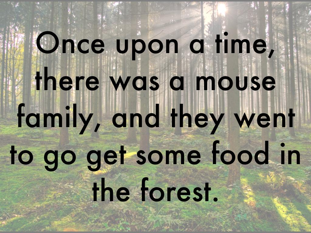 Once upon a time, there was a mouse family, and they went to go get some food in the forest.