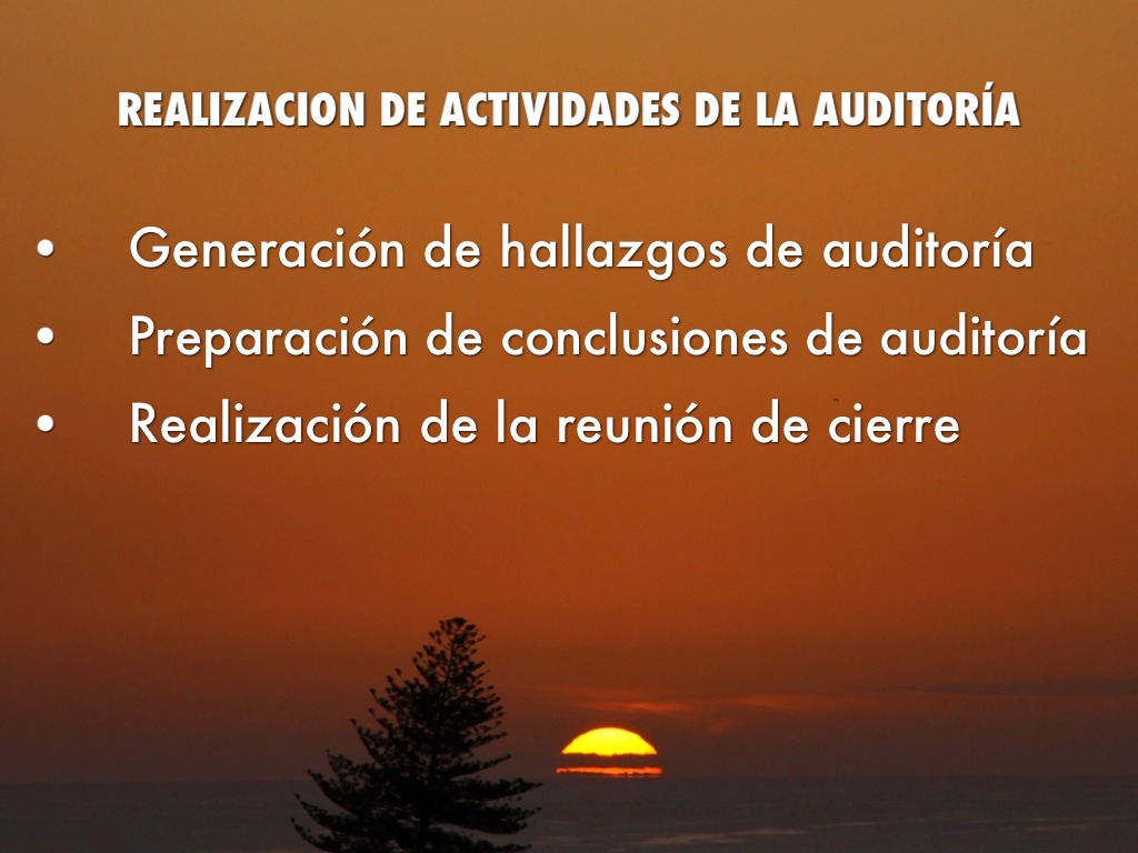 - Evaluar conformidad con los programas, cronograma e y objetivos de auditoría