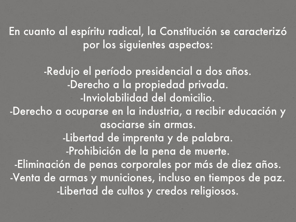 En cuanto al espíritu radical, la Constitución se caracterizó por los siguientes aspectos: