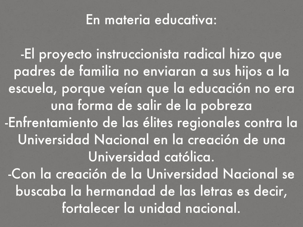 -El proyecto instruccionista radical hizo que padres de familia no enviaran a sus hijos a la escuela, porque veían que la educación no era una forma de salir de la pobreza