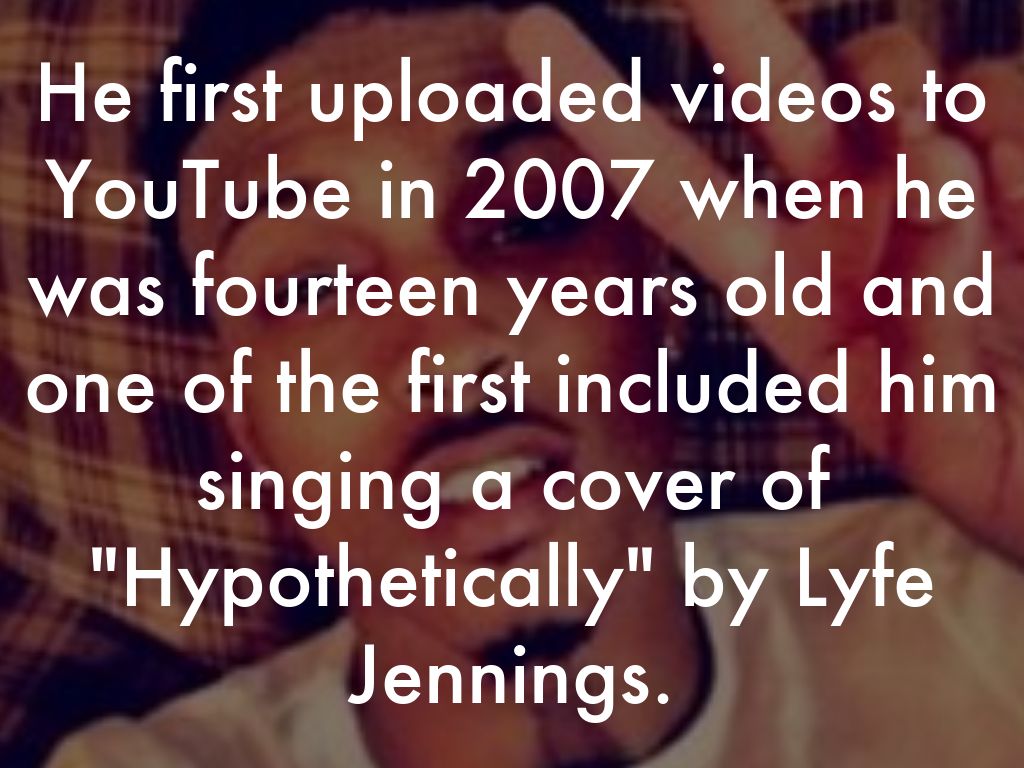 He first uploaded videos to YouTube in 2007 when he was fourteen years old and one of the first included him singing a cover of "Hypothetically" by Lyfe Jennings.