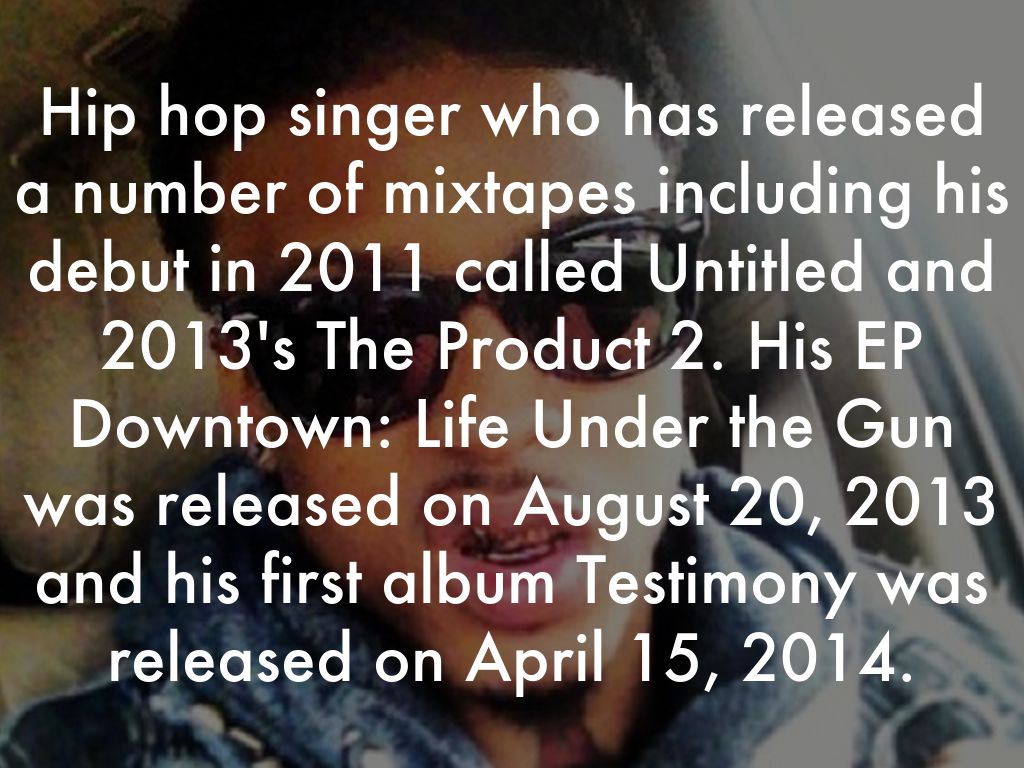 Hip hop singer who has released a number of mixtapes including his debut in 2011 called Untitled and 2013's The Product 2. His EP Downtown: Life Under the Gun was released on August 20, 2013 and his first album Testimony was released on April 15, 2014.