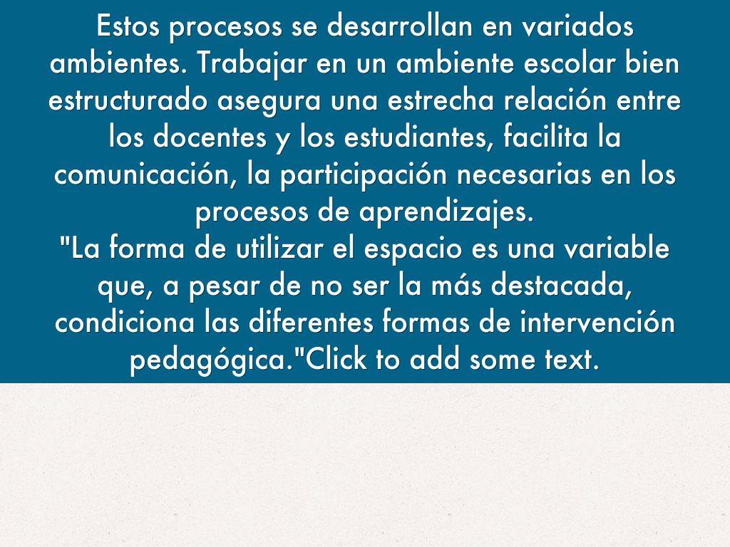 "La forma de utilizar el espacio es una variable que, a pesar de no ser la más destacada, condiciona las diferentes formas de intervención pedagógica."Click to add some text.