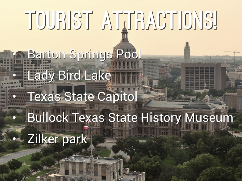 Two reasons why you would want to visit or work at Austin, Texas. #1. It is the Capitol of our state and it has a beautiful town hall. #2. There are government offices and you will be able to work for our state.
