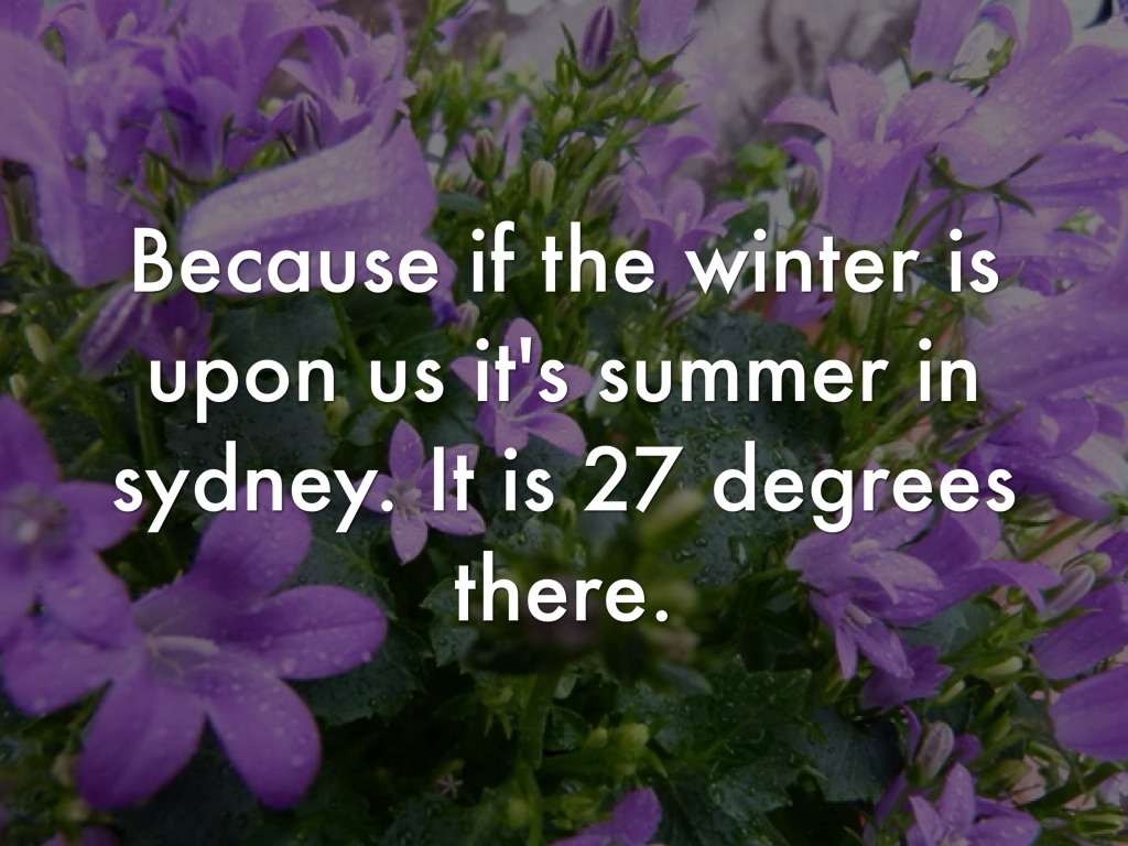 Because if the winter is upon us it's summer in sydney. It is 27 degrees there.