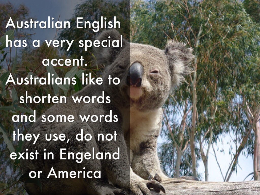 Australian English has a very special accent. Australians like to shorten words and some words they use, do not exist in Engeland or America