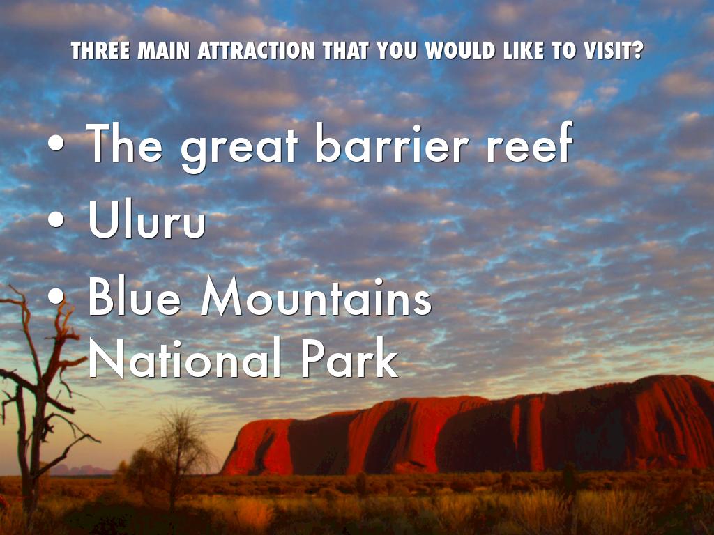 THREE MAIN ATTRACTION THAT YOU WOULD LIKE TO VISIT?