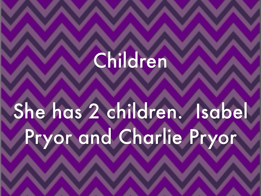 She has 2 children. Isabel Pryor and Charlie Pryor