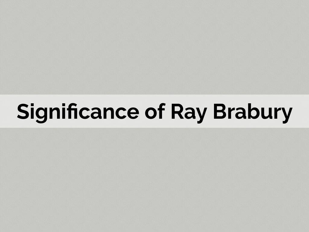 The significance of Ray Bradbury is that he won several awards such as Foundation Medal for Distinguished Contribution to American Letters (2000), the O. Henry Prize (1947 and 1948), the Benjamin Franklin Award (1953-54), the World Fantasy Award for Lifetime Achievement (1977), the Grand Master Award from the Science Fiction Writers of America, and the PEN Center USA West Lifetime Achievement Award (1985). Also he authored numerous screenplays and the television scripts including Moby Dick.