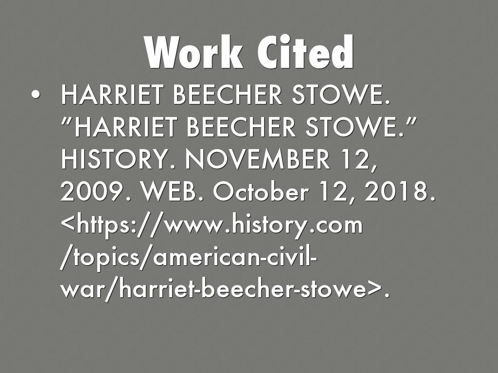 HARRIET BEECHER STOWE. ”HARRIET BEECHER STOWE.” HISTORY. NOVEMBER 12, 2009. WEB. October 12, 2018.