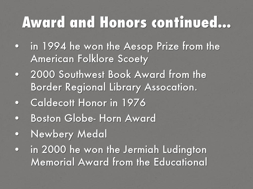 He won the 1994 Aesop Prize from the American Folklore Society.