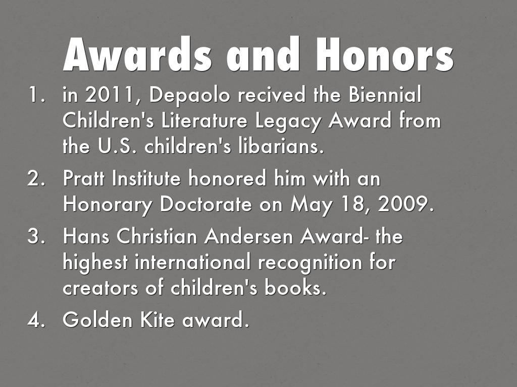 in 2011, Depaolo recived the Biennial Children's Literature Legacy Award from the U.S. children's libarians.