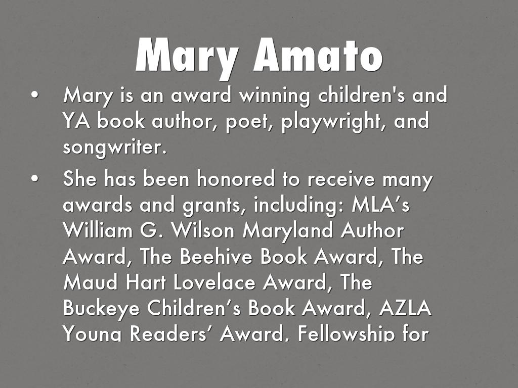 Mary is an award winning children's and YA book author, poet, playwright, and songwriter.