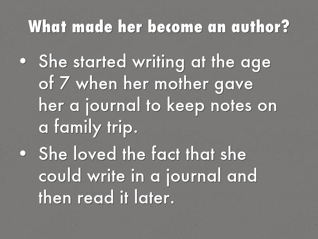 I choose this author because she is a great example of " anything is possible", She has not only become a successful author, she is also a songwriter, a poet, and she does playwright. When she sets her mind to something she does it and that is truly inspiring.