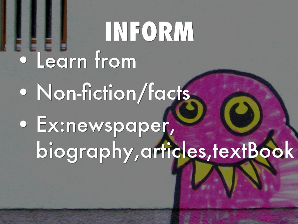 • Ex:newspaper, biography,articles,textBook