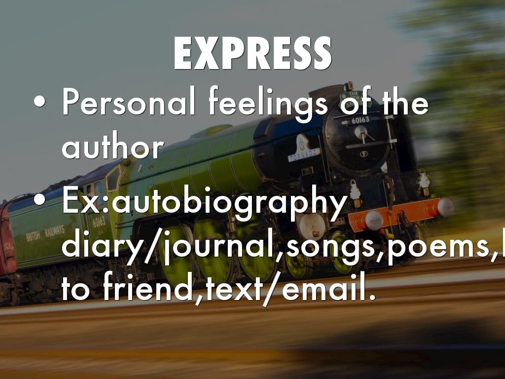 • Ex:autobiography diary/journal,songs,poems,letter to friend,text/email.
