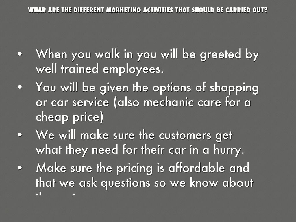 WHAR ARE THE DIFFERENT MARKETING ACTIVITIES THAT SHOULD BE CARRIED OUT?
