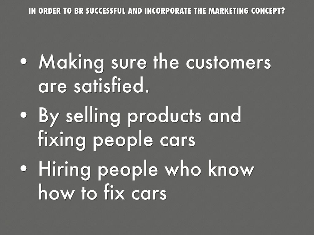 IN ORDER TO BR SUCCESSFUL AND INCORPORATE THE MARKETING CONCEPT?