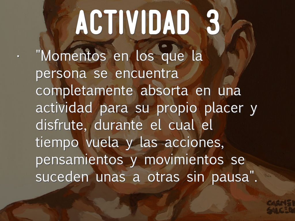 - "Momentos en los que la persona se encuentra completamente absorta en una actividad para su propio placer y disfrute, durante el cual el tiempo vuela y las acciones, pensamientos y movimientos se suceden unas a otras sin pausa".
