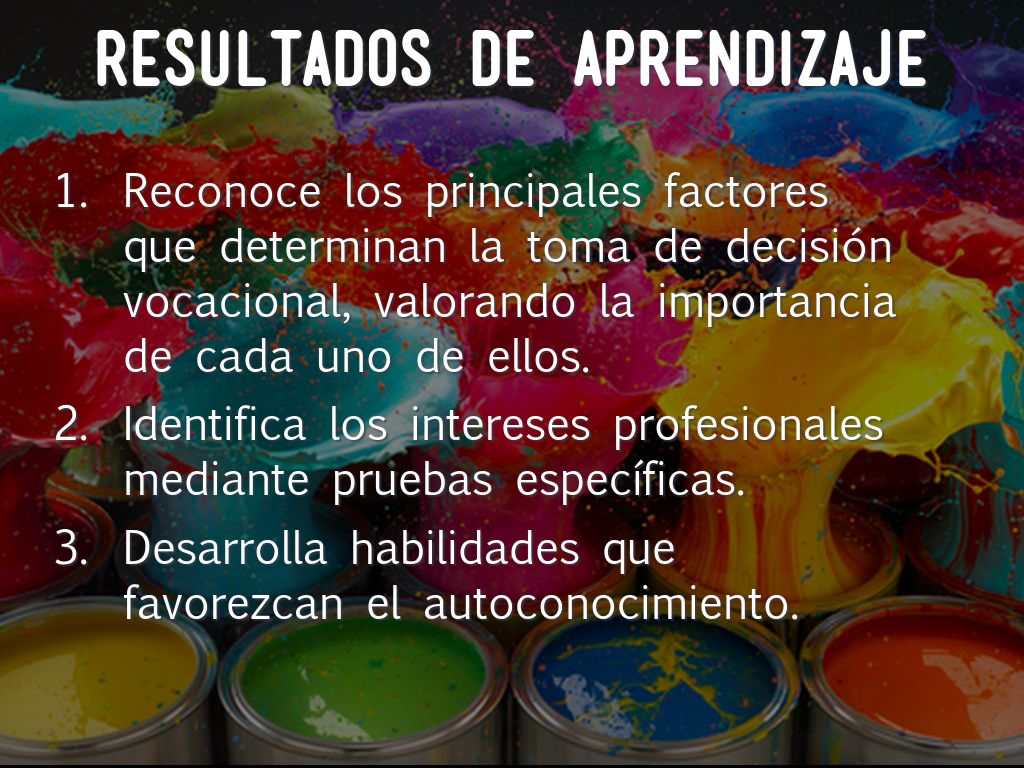 - Reconoce los principales factores que determinan la toma de decisión vocacional, valorando la importancia de cada uno de ellos.