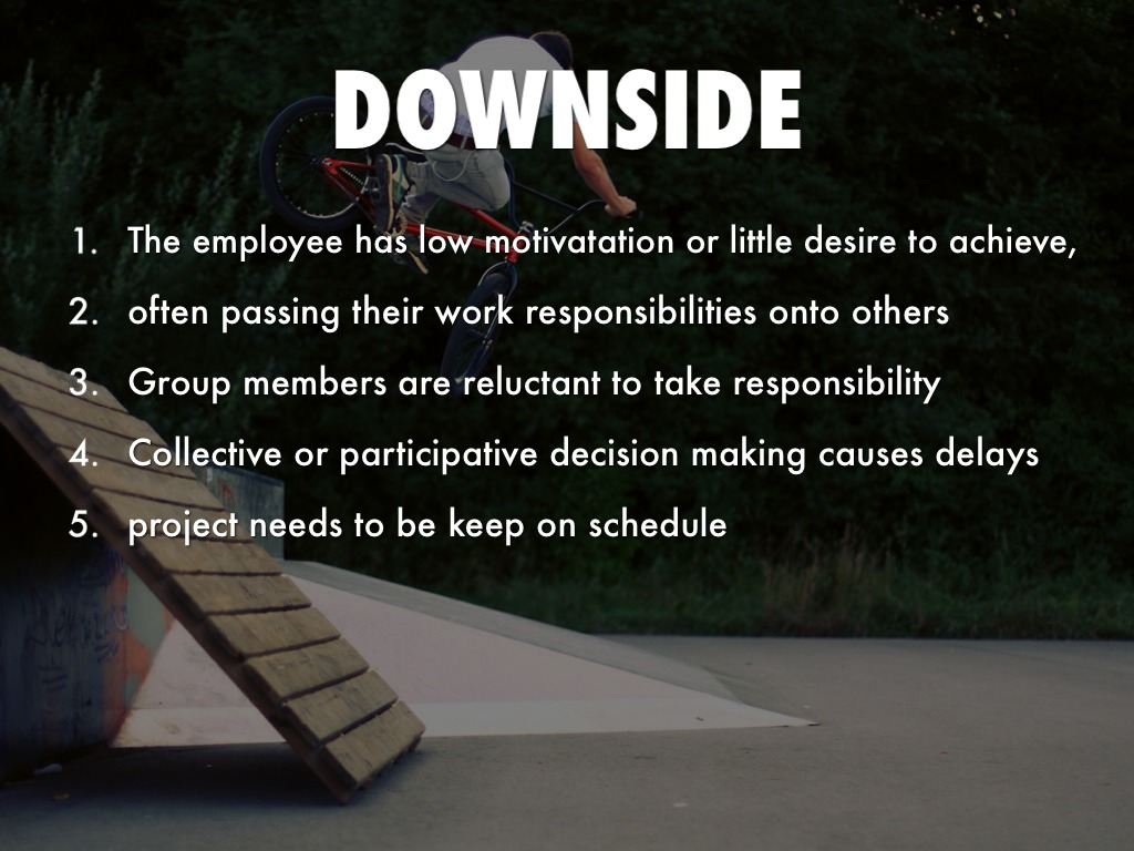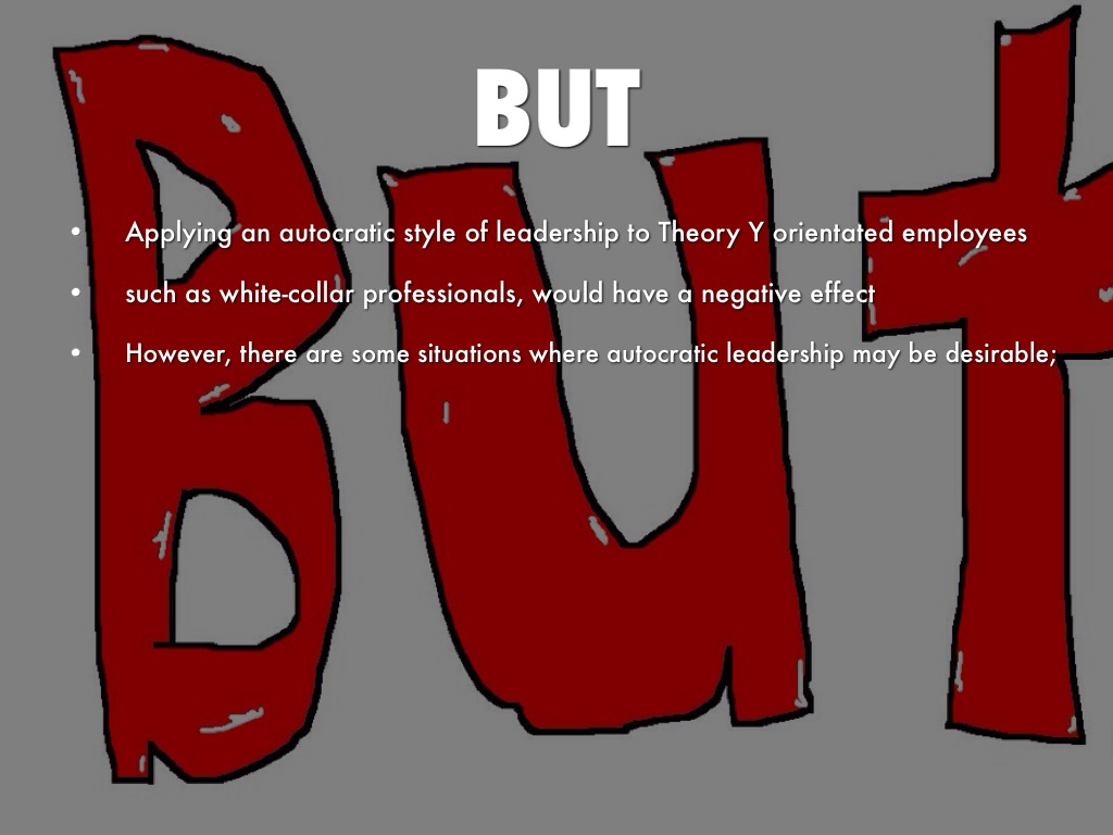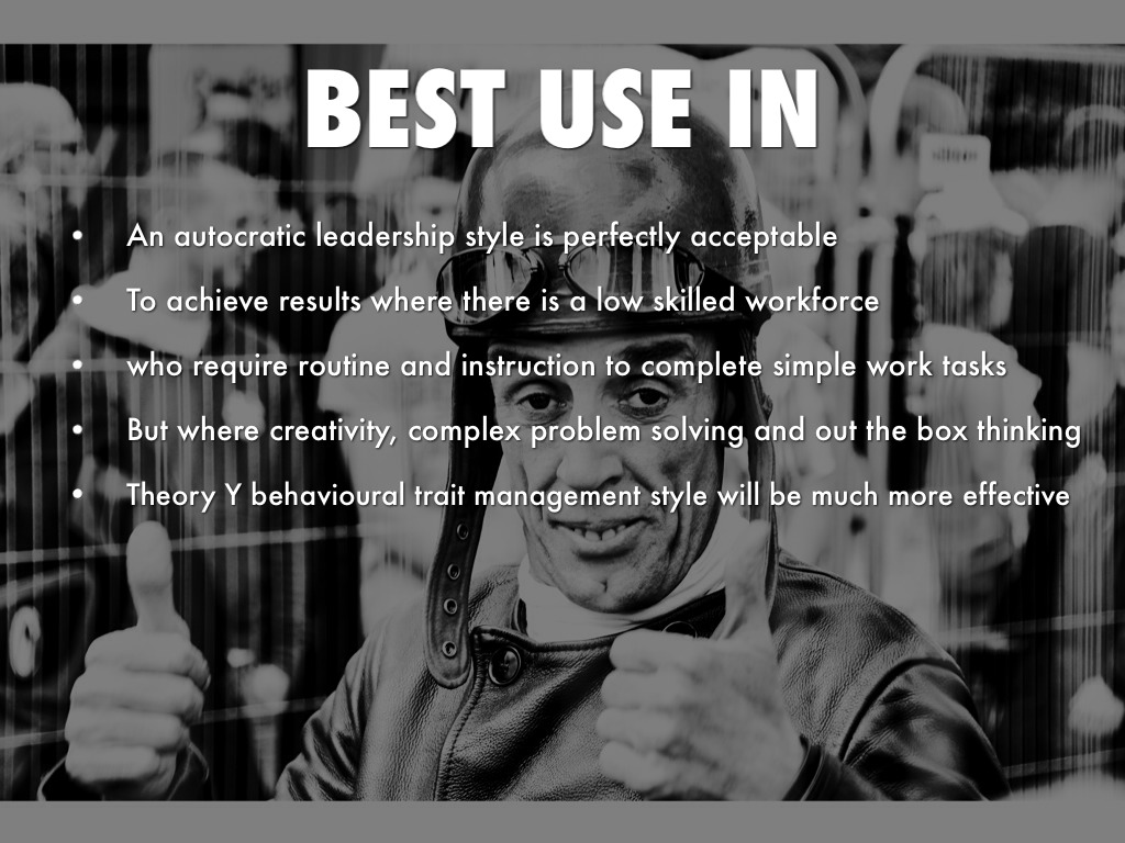 • Applying an autocratic style of leadership to Theory Y orientated employees
