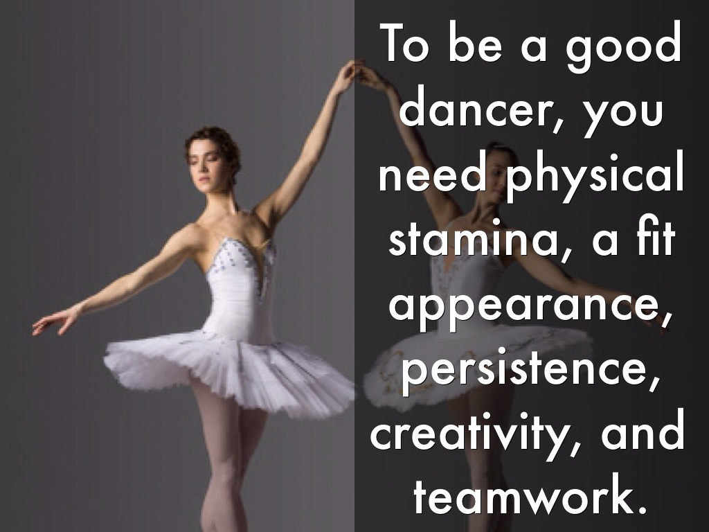 To be a good dancer, you need physical stamina, a fit appearance, persistence, creativity, and teamwork.