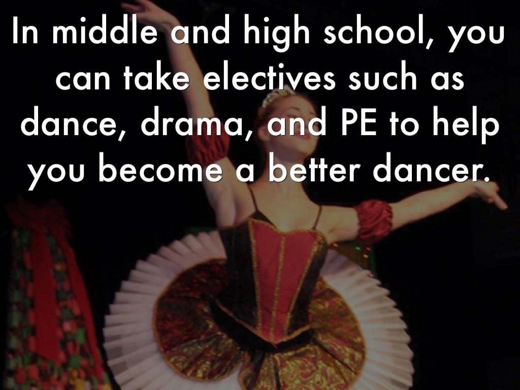 In middle and high school, you can take electives such as dance, drama, and PE to help you become a better dancer.
