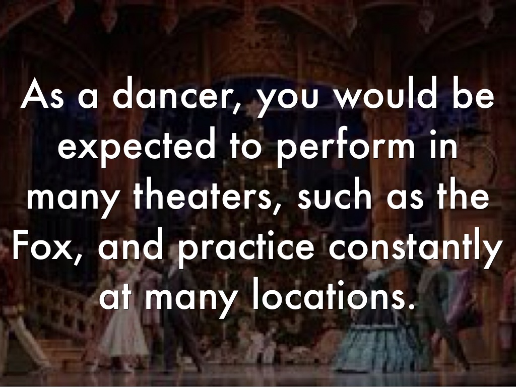 As a dancer, you would be expected to perform in many theaters, such as the Fox, and practice constantly at many locations.