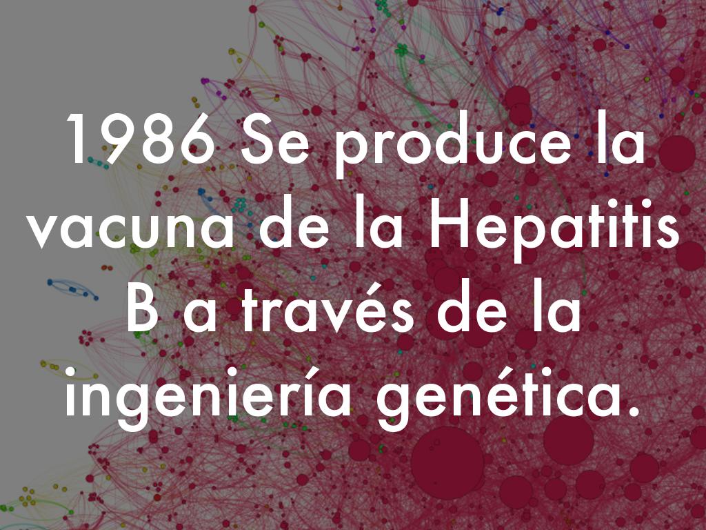 1986 Se produce la vacuna de la Hepatitis B a través de la ingeniería genética.