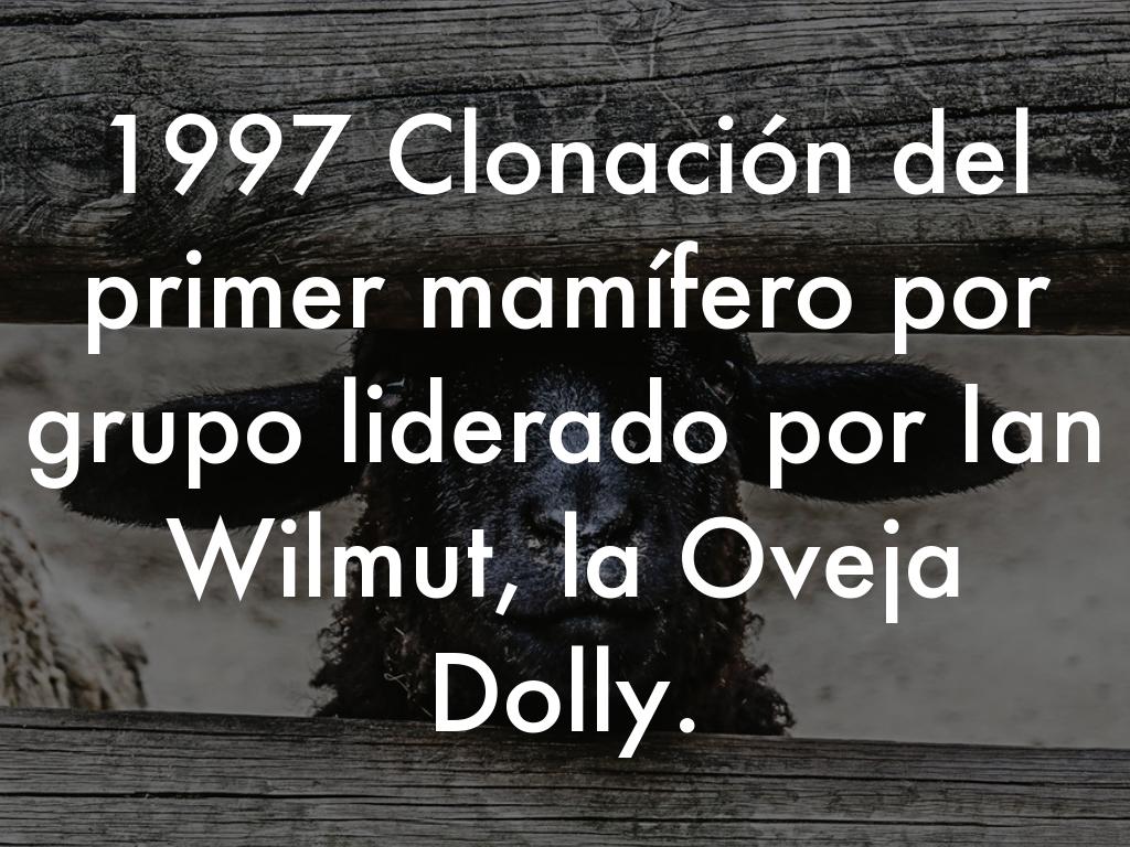 1997 Clonación del primer mamífero por grupo liderado por Ian Wilmut, la Oveja Dolly.