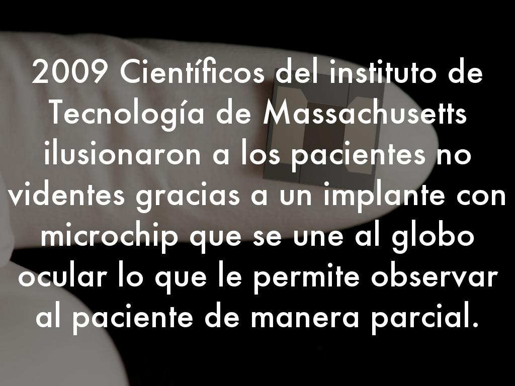 2009 Científicos del instituto de Tecnología de Massachusetts ilusionaron a los pacientes no videntes gracias a un implante con microchip que se une al globo ocular lo que le permite observar al paciente de manera parcial.