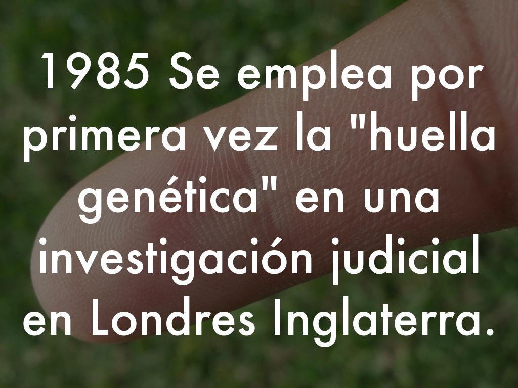 1985 Se emplea por primera vez la "huella genética" en una investigación judicial en Londres Inglaterra.