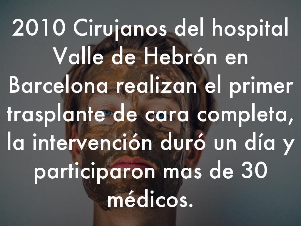 2010 Cirujanos del hospital Valle de Hebrón en Barcelona realizan el primer trasplante de cara completa, la intervención duró un día y participaron mas de 30 médicos.