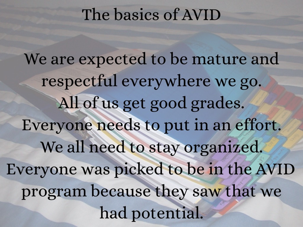 Everyone was picked to be in the AVID program because they saw that we had potential.