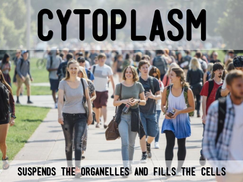 The students represent cytoplasm, because students fills up the school just like how the cytoplasm fills up the cells. The cytoplasm also suspends the organelles just like how there would be no school without students.