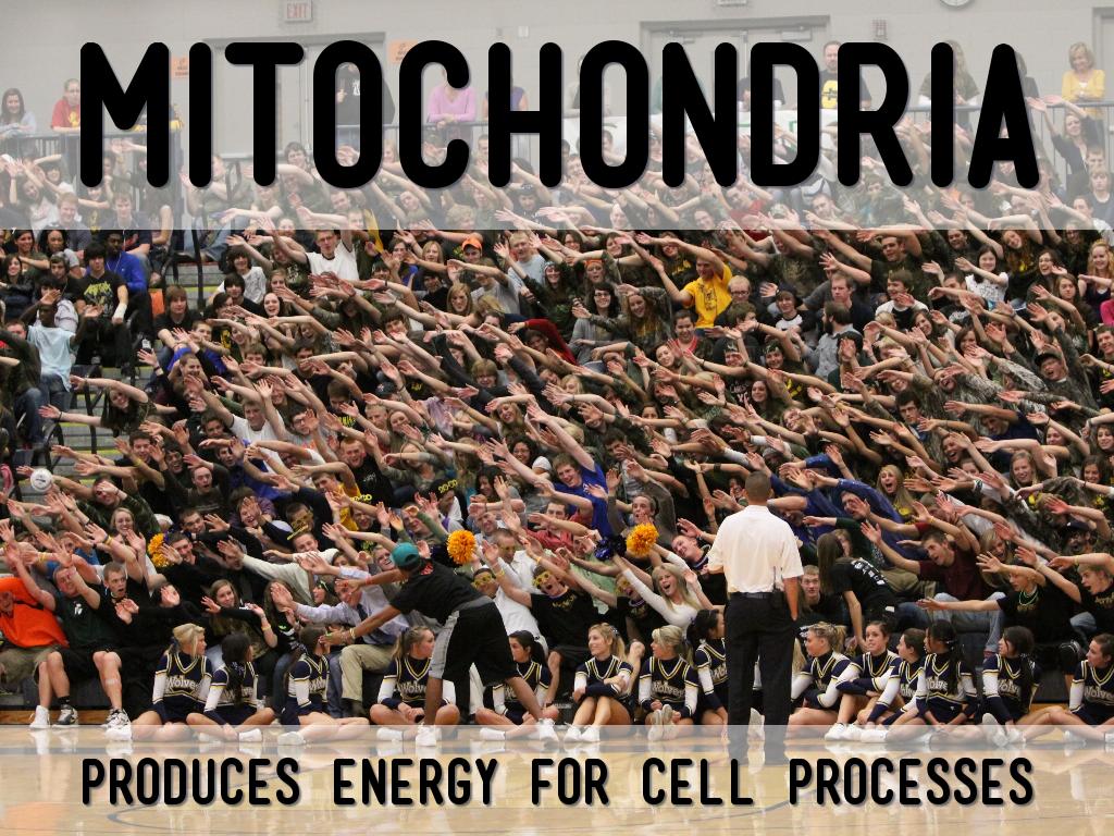 The Mitochondria produces energy for cell processes and is known as the powerhouse just like how things like rallies give students energy and make them motivated to work harder.