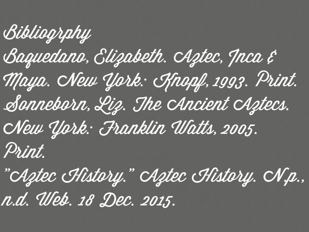 "Aztec History." Aztec History. N.p., n.d. Web. 18 Dec. 2015.