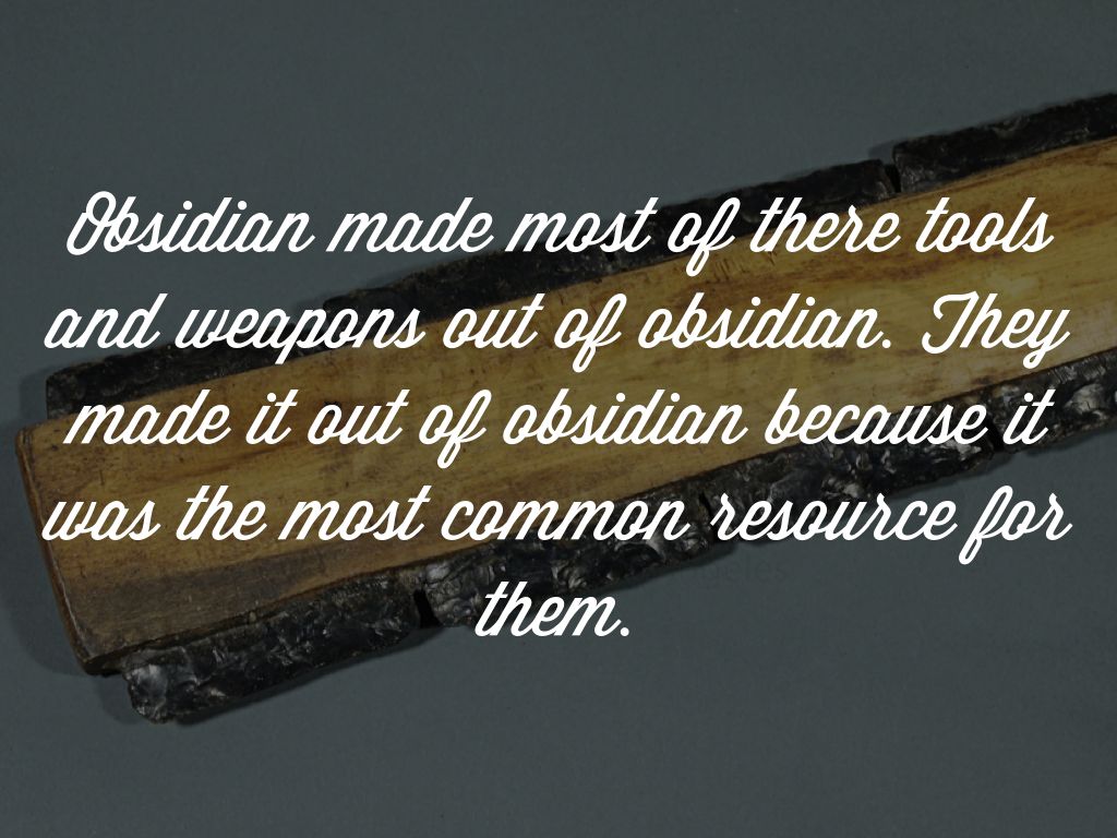 Obsidian made most of there tools and weapons out of obsidian. They made it out of obsidian because it was the most common resource for them.