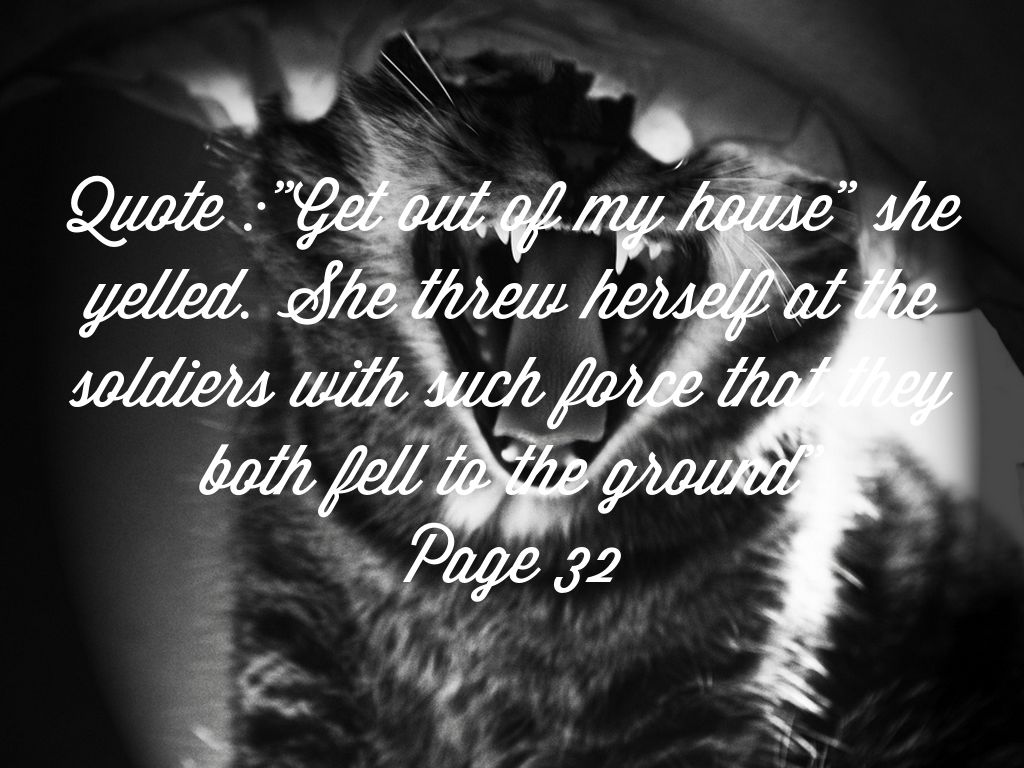 Quote: "Of course it's grinning. He's glad to be out in the sunshine after being in the dark ground for so long. Aren't you glad Mr. Skull." She made the skull nod. "See? I told you." Pg 107-108