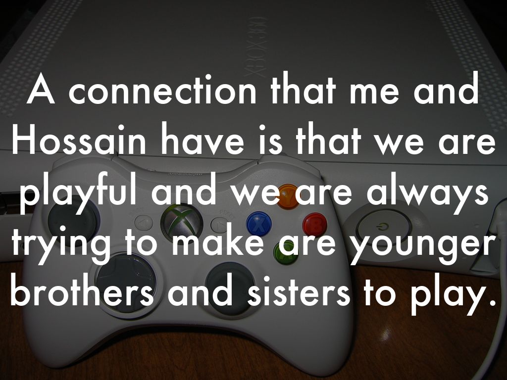A connection that me and Hossain have is that we are playful and we are always trying to make are younger brothers and sisters to play.