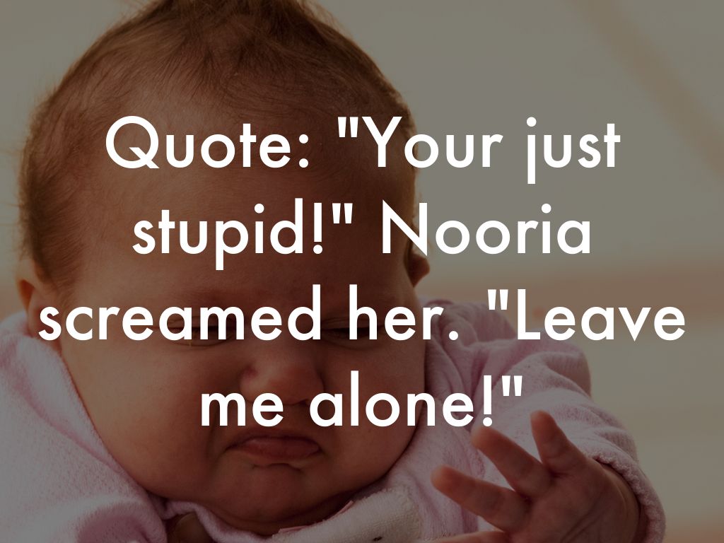 Quote: "Your just stupid!" Nooria screamed her. "Leave me alone!"