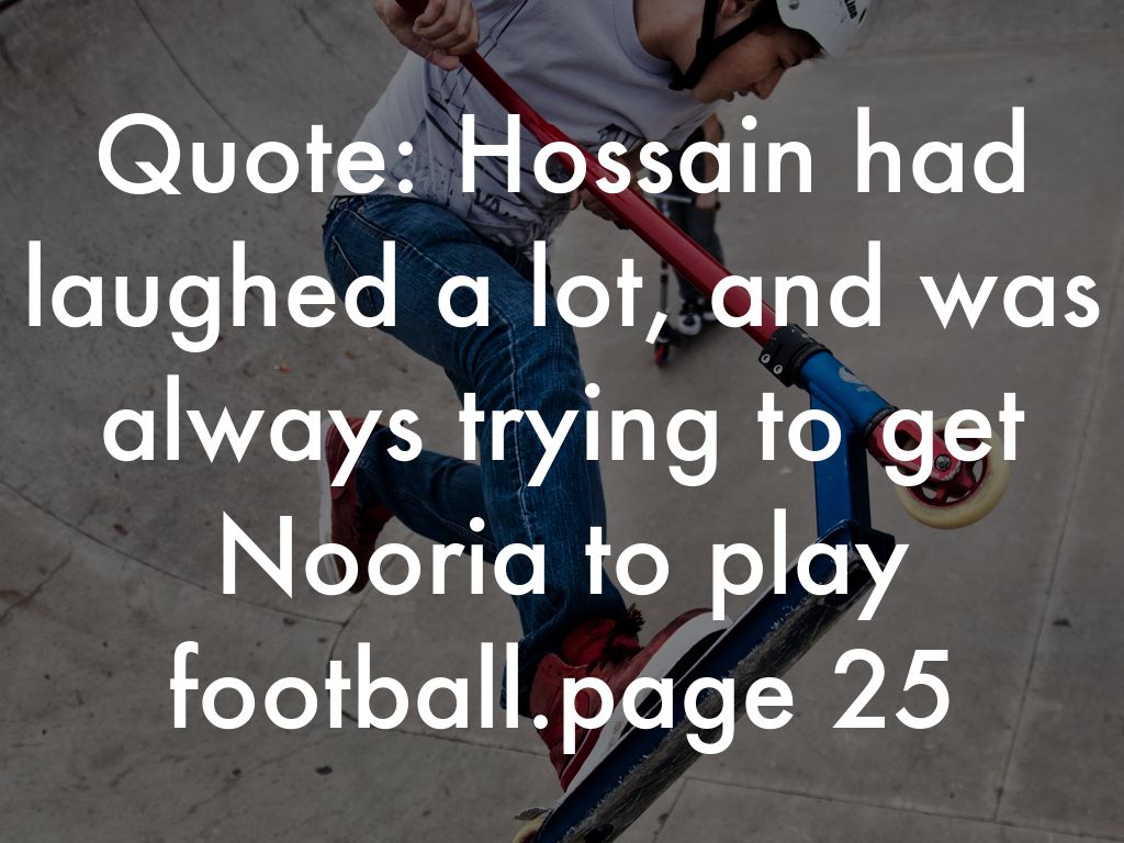Quote: Hossain had laughed a lot, and was always trying to get Nooria to play