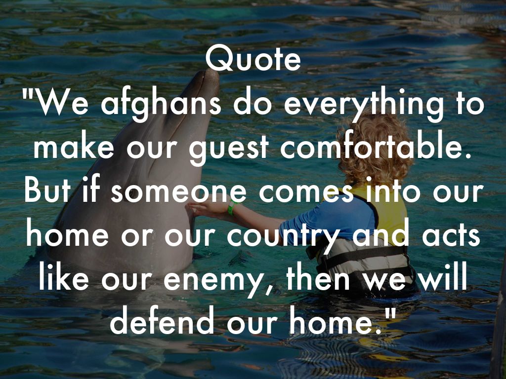 Quote "We afghans do everything to make our guest comfortable. But if someone comes into our home or our country and acts like our enemy, then we will defend our home."
