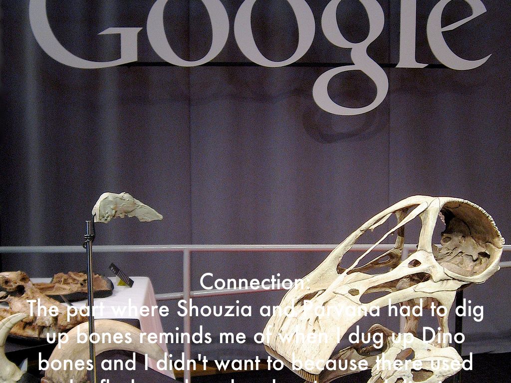 Connection: The part where Shouzia and Parvana had to dig up bones reminds me of when I dug up Dino bones and I didn't want to because there used to be flesh on them but then I started digging them up and I was filled with courage.