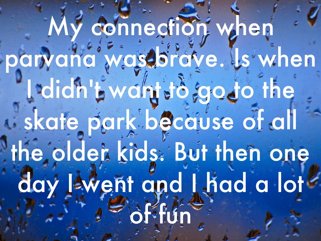 My connection when parvana was brave. Is when I didn't want to go to the skate park because of all the older kids. But then one day I went and I had a lot of fun