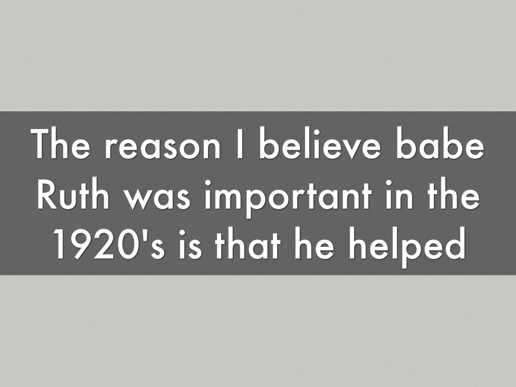 The reason I believe babe Ruth was important in the 1920's is that he helped